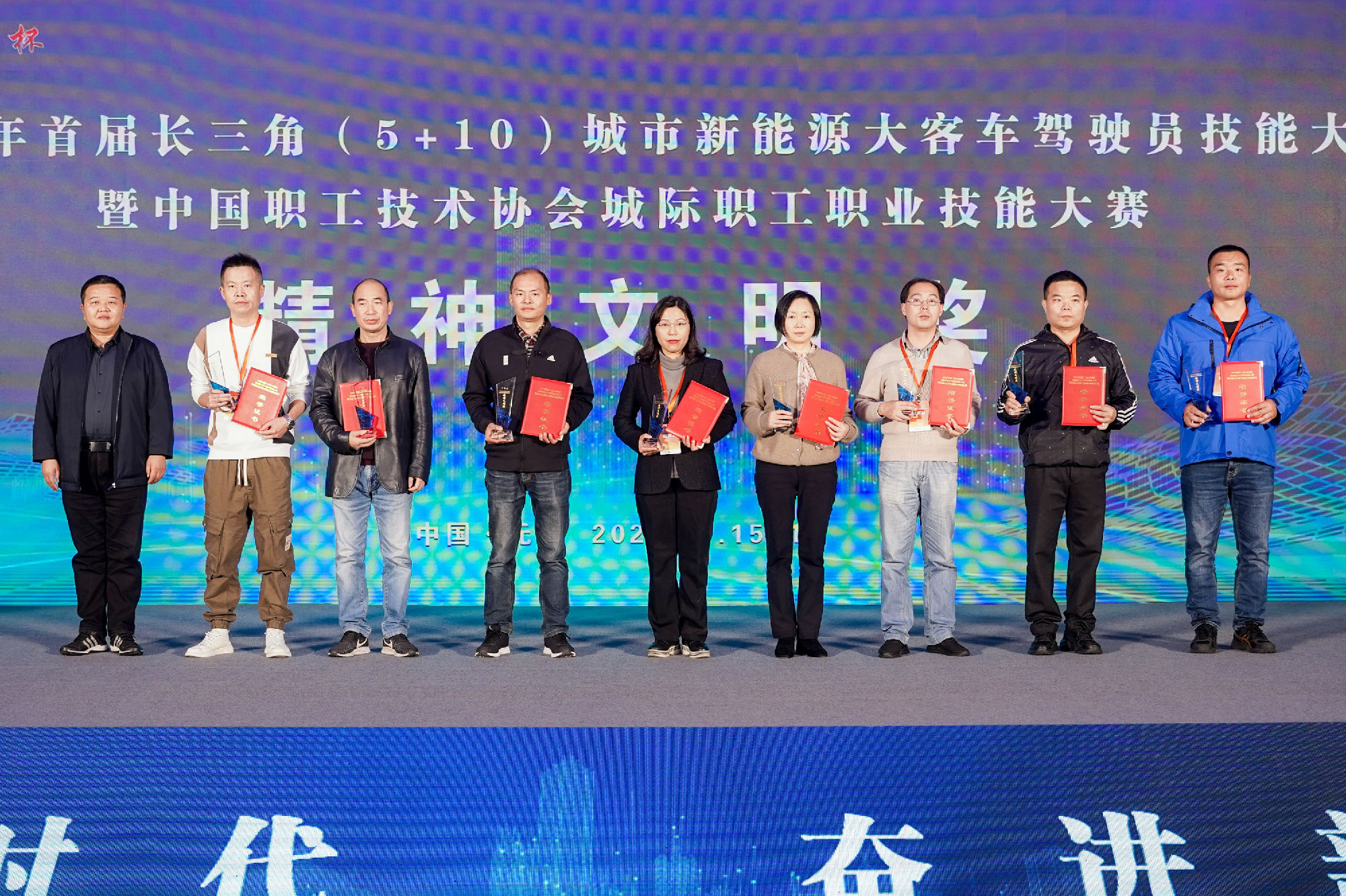 11月16日,2022年首屆長(zhǎng)三角(5+10)城市新能源大客車駕駛員技能大賽在無(wú)錫完美收官。徐州公交集團(tuán)黨委副書記、紀(jì)委書記、工會(huì)主席竇同銀帶領(lǐng)由集團(tuán)駕駛員組成的徐州市代表隊(duì)參加此次競(jìng)賽,并榮獲了團(tuán)體精神文明獎(jiǎng),駕駛員段世望、秦浩分別獲三等獎(jiǎng)的好成績(jī)。