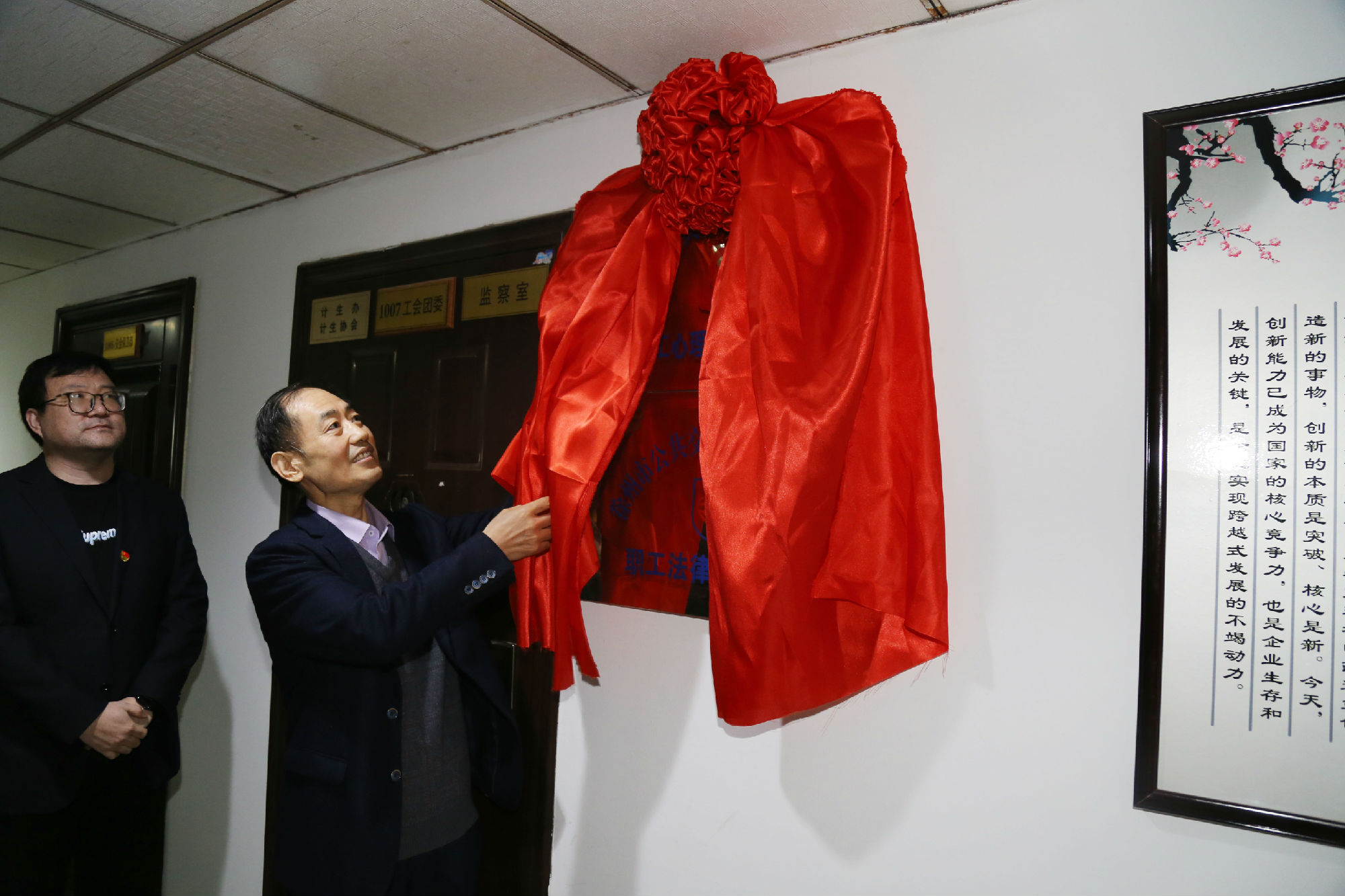 為進(jìn)一步落實(shí)公交家文化建設(shè)工程,幫助職工維護(hù)自身合法權(quán)益,關(guān)注職工心理健康,推動(dòng)創(chuàng)建幸福和諧企業(yè),31日上午,徐州公交集團(tuán)職工法律援助中心、職工心理健康疏導(dǎo)中心在公交大廈10樓掛牌成立。集團(tuán)黨委書(shū)記、董事長(zhǎng)高守江,紀(jì)委書(shū)記、工會(huì)主席袁夫松現(xiàn)場(chǎng)揭牌。