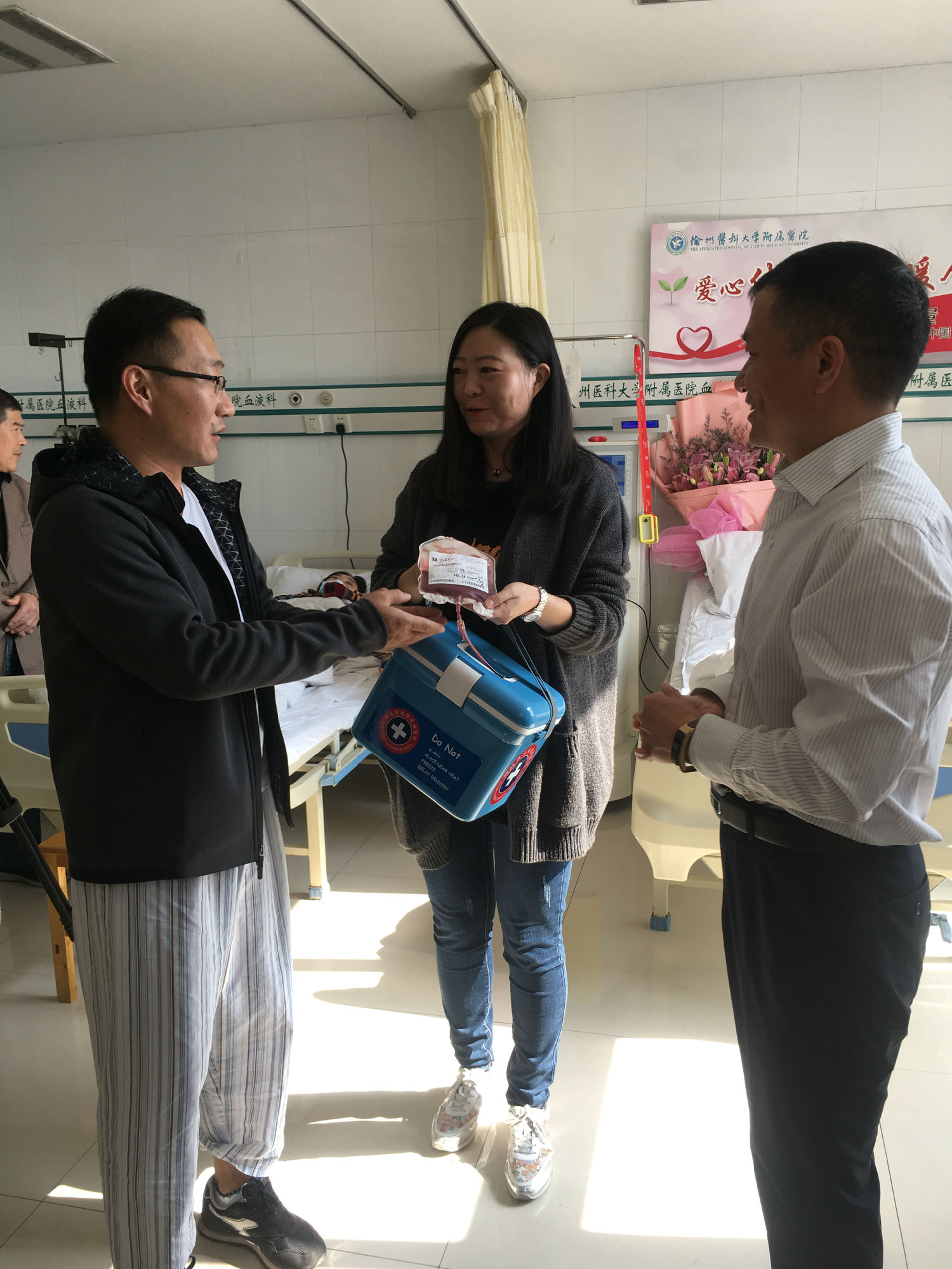 自7月底接到通知的這段時間,鄭剛一直積極配合著,希望保持最佳的身體狀態(tài)進行捐獻。他努力克制自己,戒煙戒酒,鍛煉身體,增加高營養(yǎng)的飲食調(diào)理。喝不慣牛奶的他甚至強迫著自己一天喝兩包奶。國慶節(jié)幾天,他突然感冒發(fā)低熱,竟忍著沒敢吃藥……鄭剛所在的單位也給予了大力的支持和配合,10月25日入院,徐州公交為他舉辦了隆重的歡送儀式,董事長、總經(jīng)理杜紅軍等領導給他送來了慰問金,安排好他的休息時間。