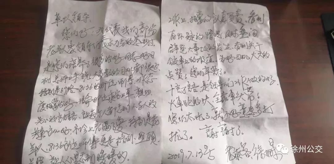 7月15日上午,一位老年乘客來到新巴士公司,送來一封表揚(yáng)信,對69路駕駛員的服務(wù)稱贊不已,“雖然今天天氣熱,但是我還是要親自送表揚(yáng)信,這么優(yōu)秀的同志,應(yīng)該得到表揚(yáng)。”老人這樣說道。