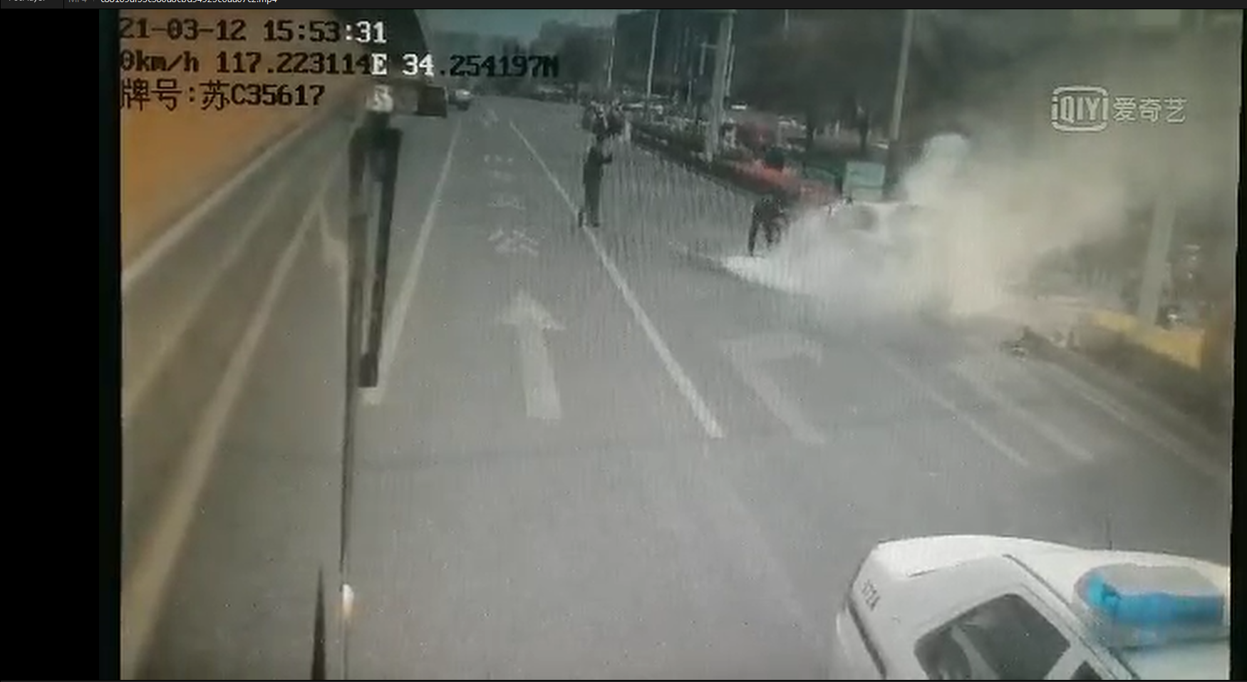 周星見狀,立即將車停放在路邊安全地帶,與車內(nèi)乘客解釋,取得他們同意后,周星迅速拿起車內(nèi)滅火器,沖向火車輛,幫助私家車滅火。這時,一輛警車從附近經(jīng)過,交警同志也一起參與到救火行動中。沒多久,在大家的齊心努力下,私家車的火終于被撲滅了,周星這才松了口氣,重新回到線路運營。