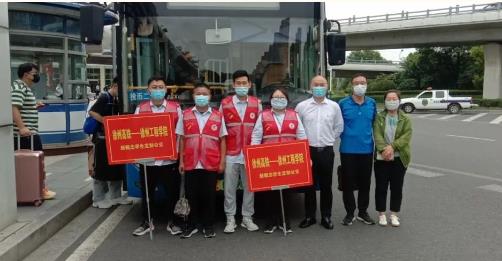 同時(shí),為了服務(wù)好學(xué)生返校,新城公司組織雷馳平安志愿者服務(wù)隊(duì)在徐州東站出口處集結(jié),隊(duì)員們高舉引導(dǎo)牌,迎接工程學(xué)院學(xué)子的到來?,F(xiàn)場幫助學(xué)生們提箱子拿行李,測體溫,查驗(yàn)“兩碼”,引導(dǎo)學(xué)生有序上車。并在車內(nèi)備有應(yīng)急藥箱、消毒濕巾、口罩、飲用水等物資,受到學(xué)生們的一致好評(píng)!
