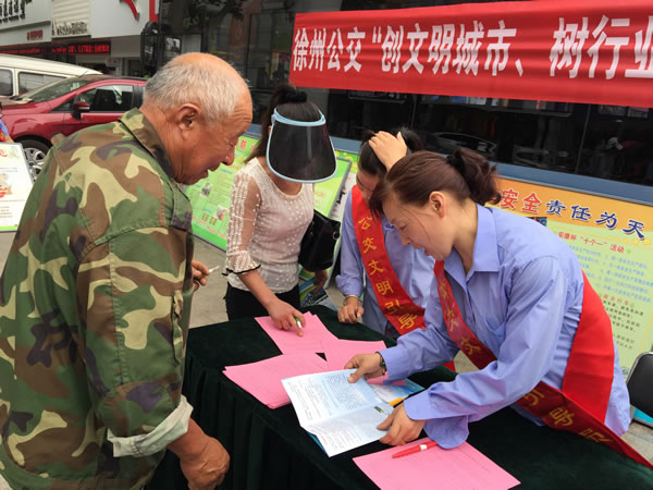 6月16日上午,賈汪公司組織駕乘人員身披綬帶,在賈汪區(qū)中心步行街開(kāi)展“創(chuàng)文明城市,樹(shù)行業(yè)新風(fēng)”便民咨詢活動(dòng),發(fā)放《徐州公交乘車(chē)指南》,征求市民建議和意見(jiàn),受到廣大市民好評(píng)。?xml:namespace>