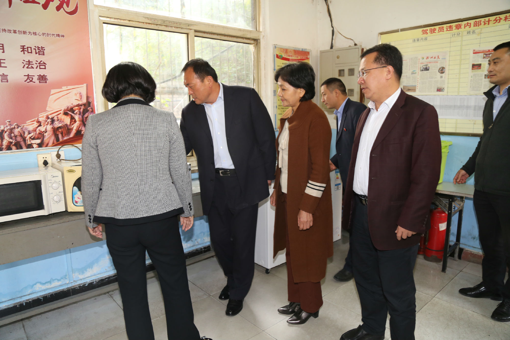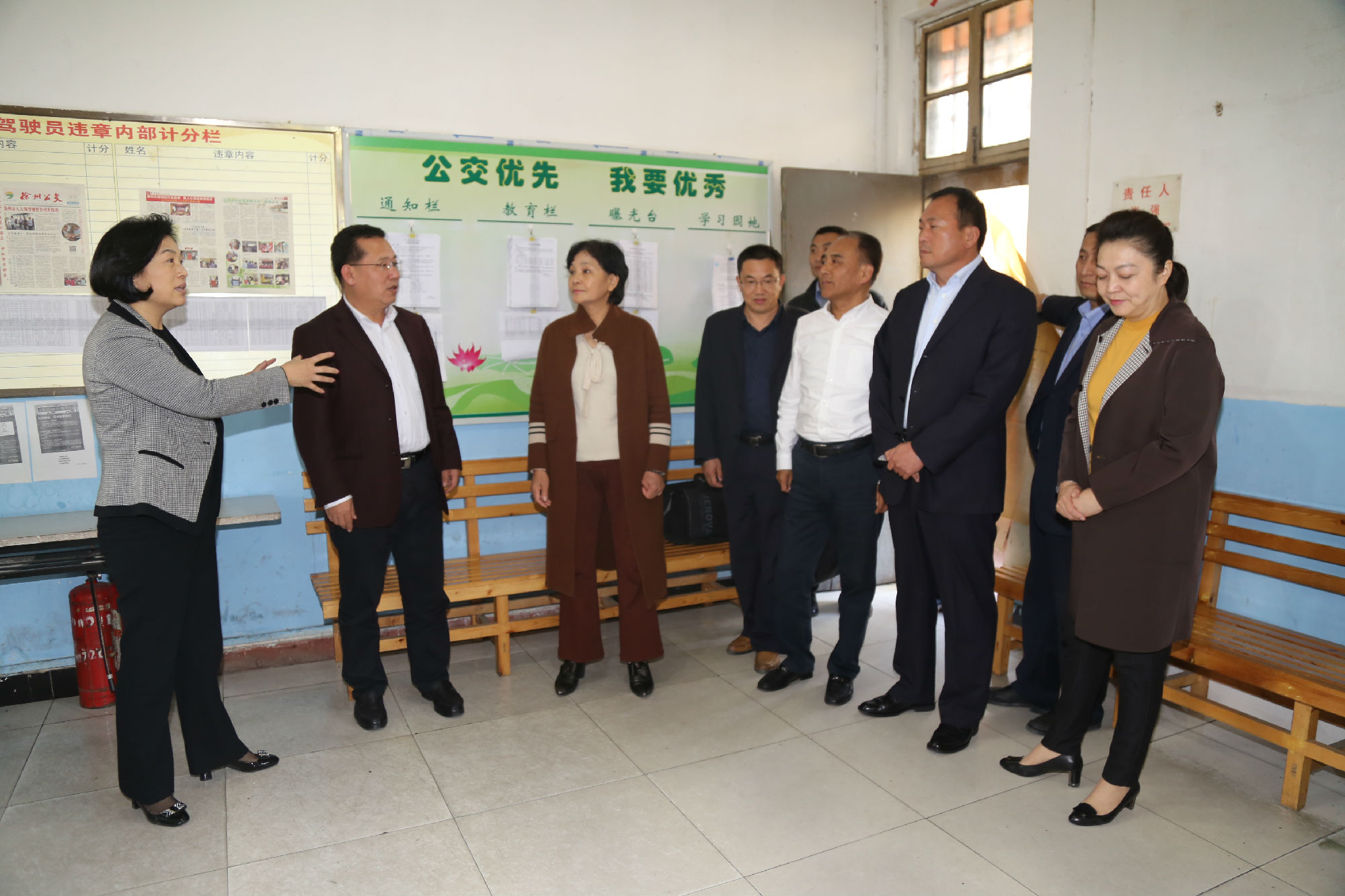 10月24日下午,市政協(xié)副主席張耀環(huán)帶領(lǐng)工會(huì)界別部分委員,來(lái)到公交建筑學(xué)院調(diào)度室“公交愛(ài)心驛站”站點(diǎn),視察我市戶外工作者服務(wù)站點(diǎn)建設(shè)情況。市政協(xié)常委、市總工會(huì)副主席劉洪印出席活動(dòng),市交通運(yùn)輸局工會(huì)主席王培河、公司董事長(zhǎng)、總經(jīng)理杜紅軍陪同視察。