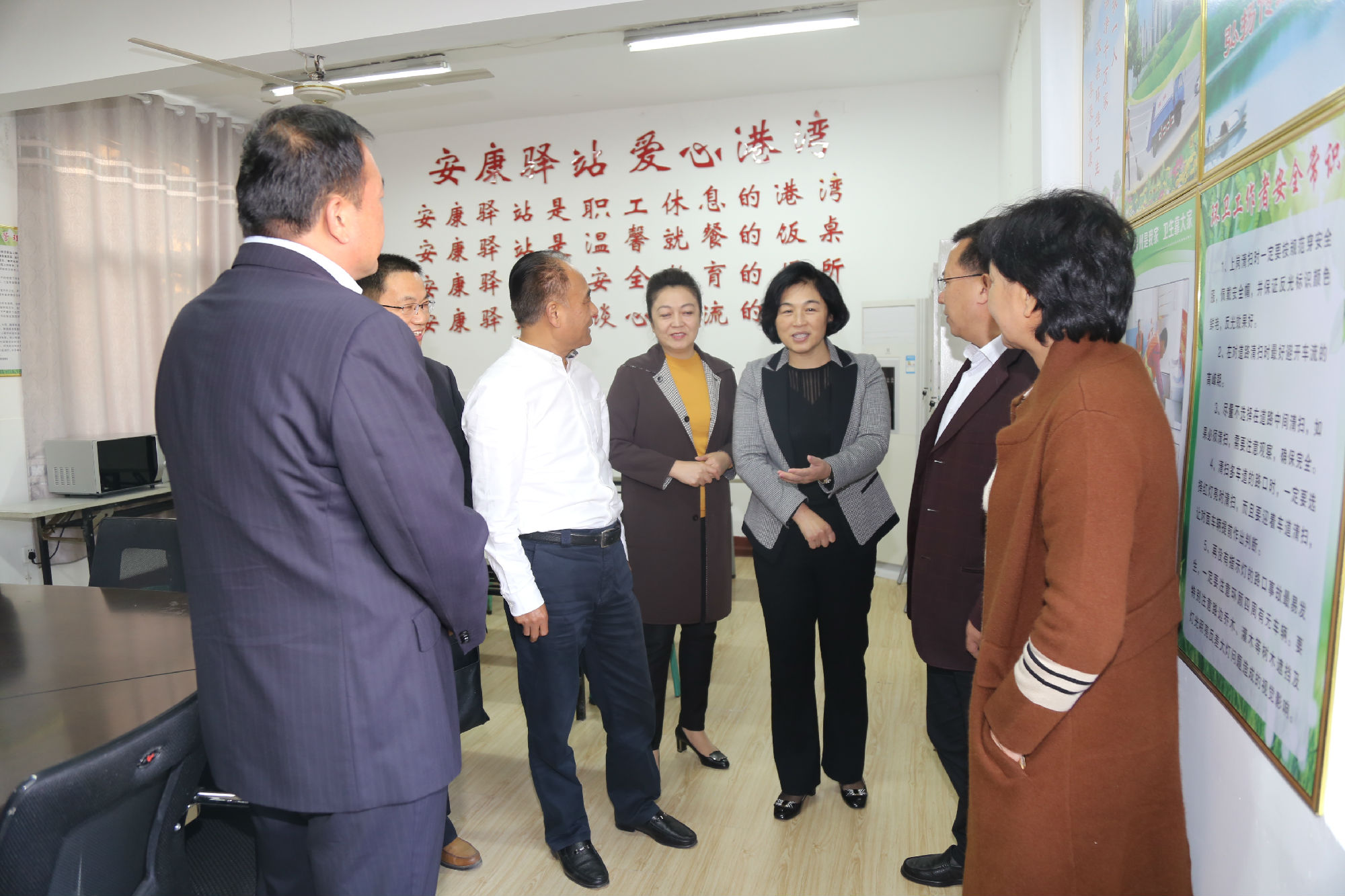 2015年以來(lái),公司積極響應(yīng)市總工會(huì)關(guān)于維護(hù)環(huán)衛(wèi)職工等特殊群體安康權(quán)益推進(jìn)“安康愛(ài)心驛站”建設(shè)的工作部署,在彭祖路11路調(diào)度室、19路調(diào)度室、銅山中醫(yī)院調(diào)度室、建筑學(xué)院調(diào)度室、礦大南湖調(diào)度室、火車(chē)站11路調(diào)度室等處設(shè)立了公交愛(ài)心驛站,并積極籌措資金為各個(gè)愛(ài)心驛站配備了冰箱、微波爐、飲水機(jī)、空調(diào)、連椅、醫(yī)藥箱、報(bào)夾、柜子等服務(wù)設(shè)施,為500多名公交駕駛員及附近道路上的環(huán)衛(wèi)人員等戶外工作者提供熱飯、喝水、取暖乘涼,遮風(fēng)避雨,休息等方便,實(shí)現(xiàn)了面對(duì)面、零距離服務(wù)戶外勞動(dòng)者。