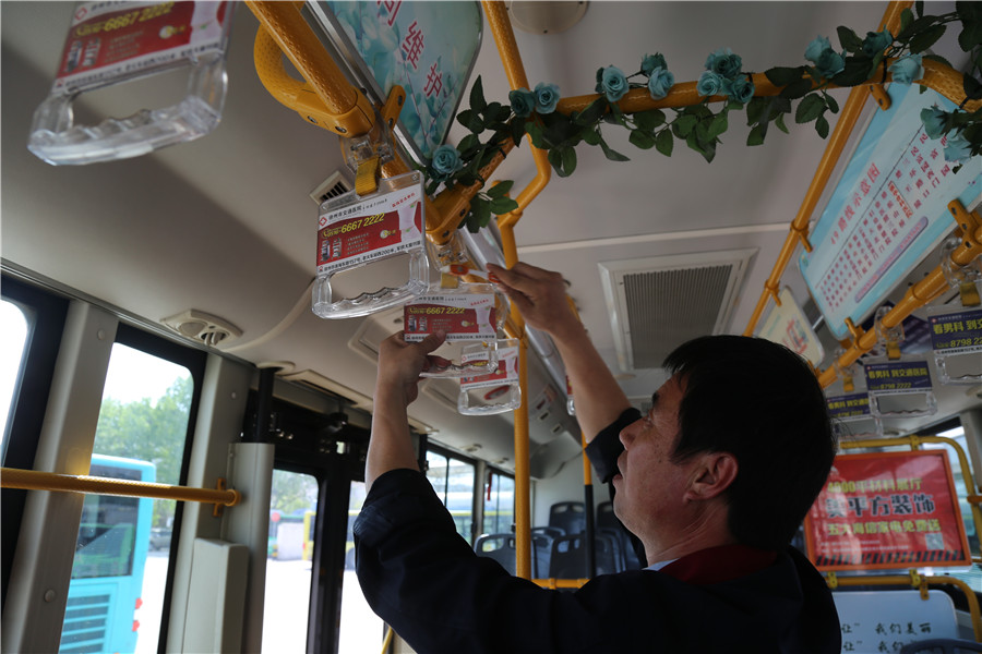4月19日下午3點(diǎn)多,“嚓、嚓、嚓,嚓、嚓、嚓!”筆者在韓山停車場偶然間發(fā)現(xiàn)一輛49路車上一個(gè)忙碌的身影,正在拿著黃色牙刷在刷扶手。走上車,哦,原來是市勞模、49路四星級駕駛員王博正在利用休停時(shí)間用牙膏刷洗拉手,別說,這個(gè)小竅門還真不錯(cuò)!經(jīng)過王師傅的辛勤刷洗,原本發(fā)黑的黃色拉手布煥然一新!配詩一首: